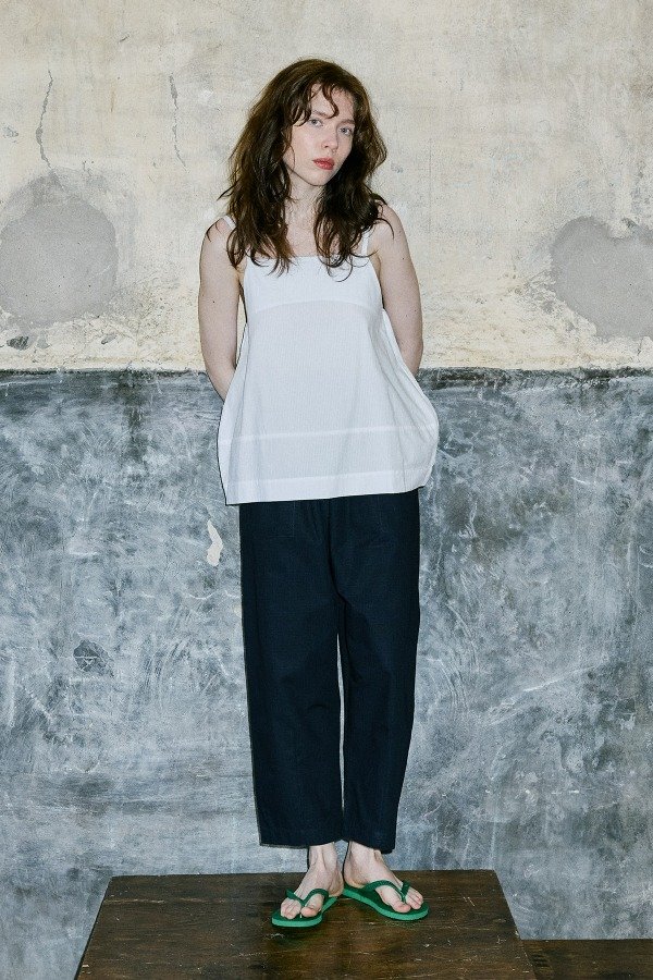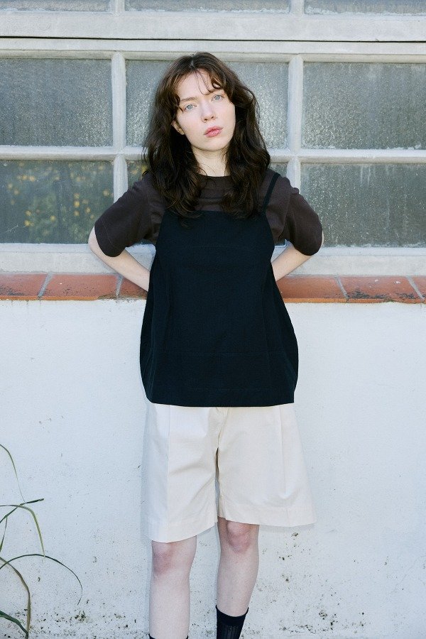 Blusa bombé con breteles finitos, elástico en espalda para ajuste al cuerpo, corte parte inferior.