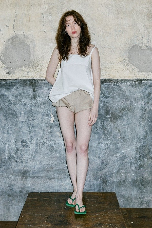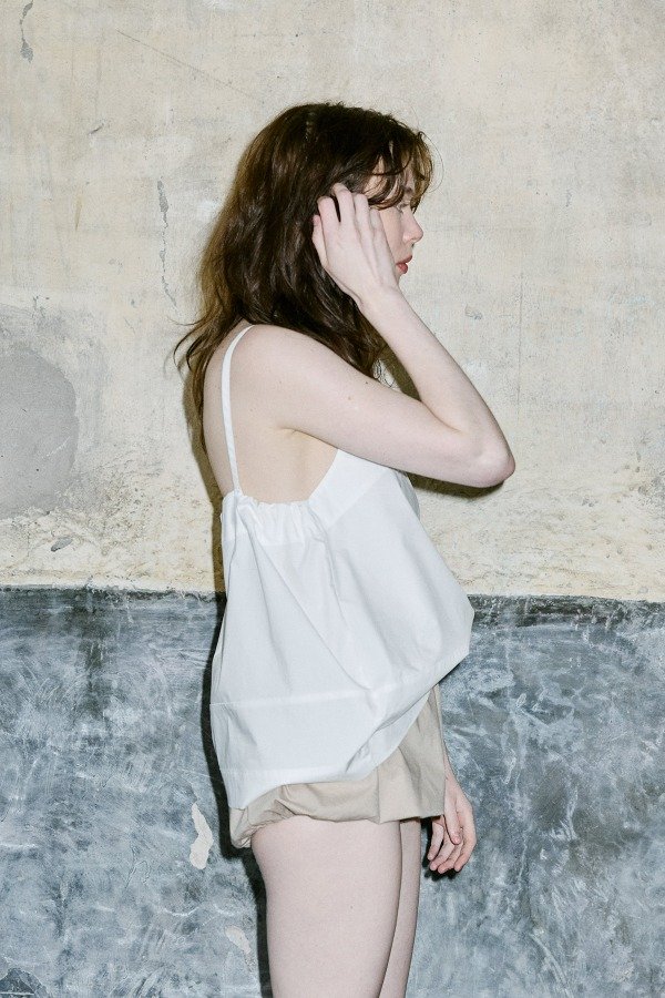 Blusa bombé con breteles finitos, elástico en espalda para ajuste al cuerpo, corte parte inferior.