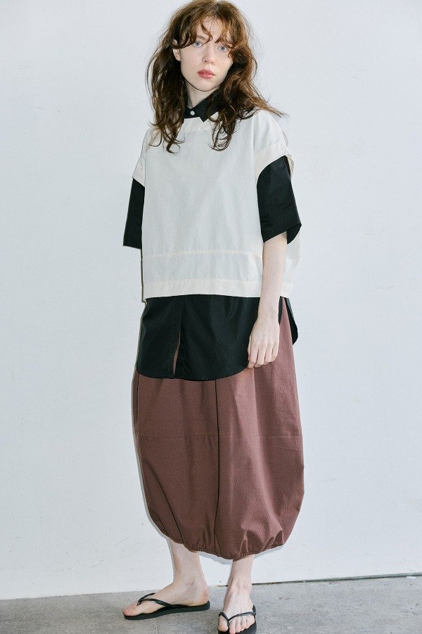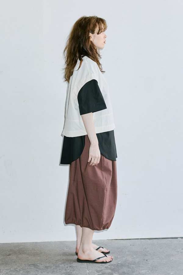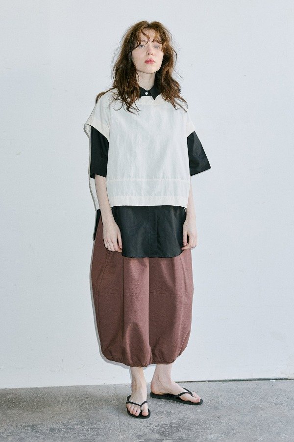 Blusa bombé sin mangas, botones en espalda de pasta al tono, corte parte inferior.