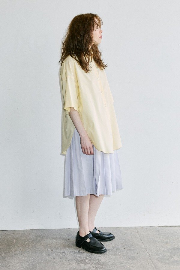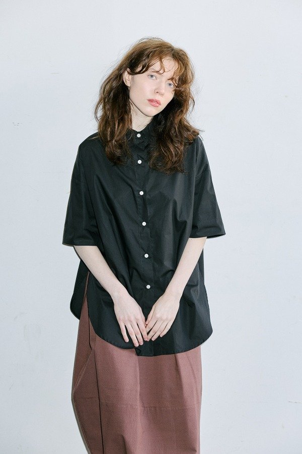 Camisa mangas cortas, tajo curvos en laterales, canesú en espalda con tabla.